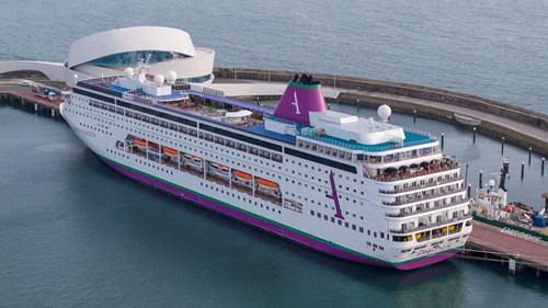 Construído em 1999 para a Festival Cruises, sob o nome MISTRAL, o AMBITION navega desde 2022 para a Ambassador Cruise Lines. Esta é a primeira de seis escalas previstas para este ano deste navio e a segunda de treze escalas da companhia britânica no Terminal de Cruzeiros em 2025.