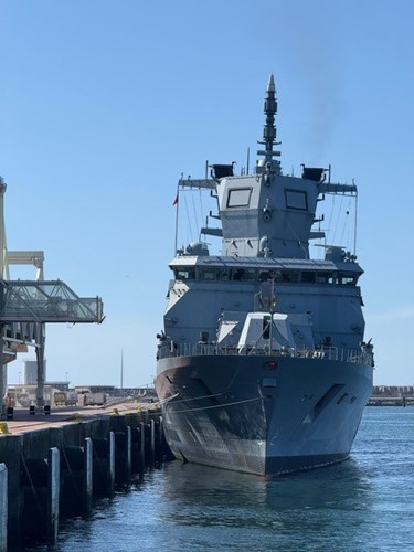 O Terminal de Cruzeiros do Porto de Leixões acolheu, desde o passado sábado, o navio militar FGS BADEN-WUERTTEMBERG (F222), pertencente à Marinha Alemã. Proveniente de Limassol, Chipre, esta fragata da mais recente e avançada classe Baden-Württemberg conta com 159 tripulantes a bordo e encontra-se em Leixões numa escala técnica e de descanso.